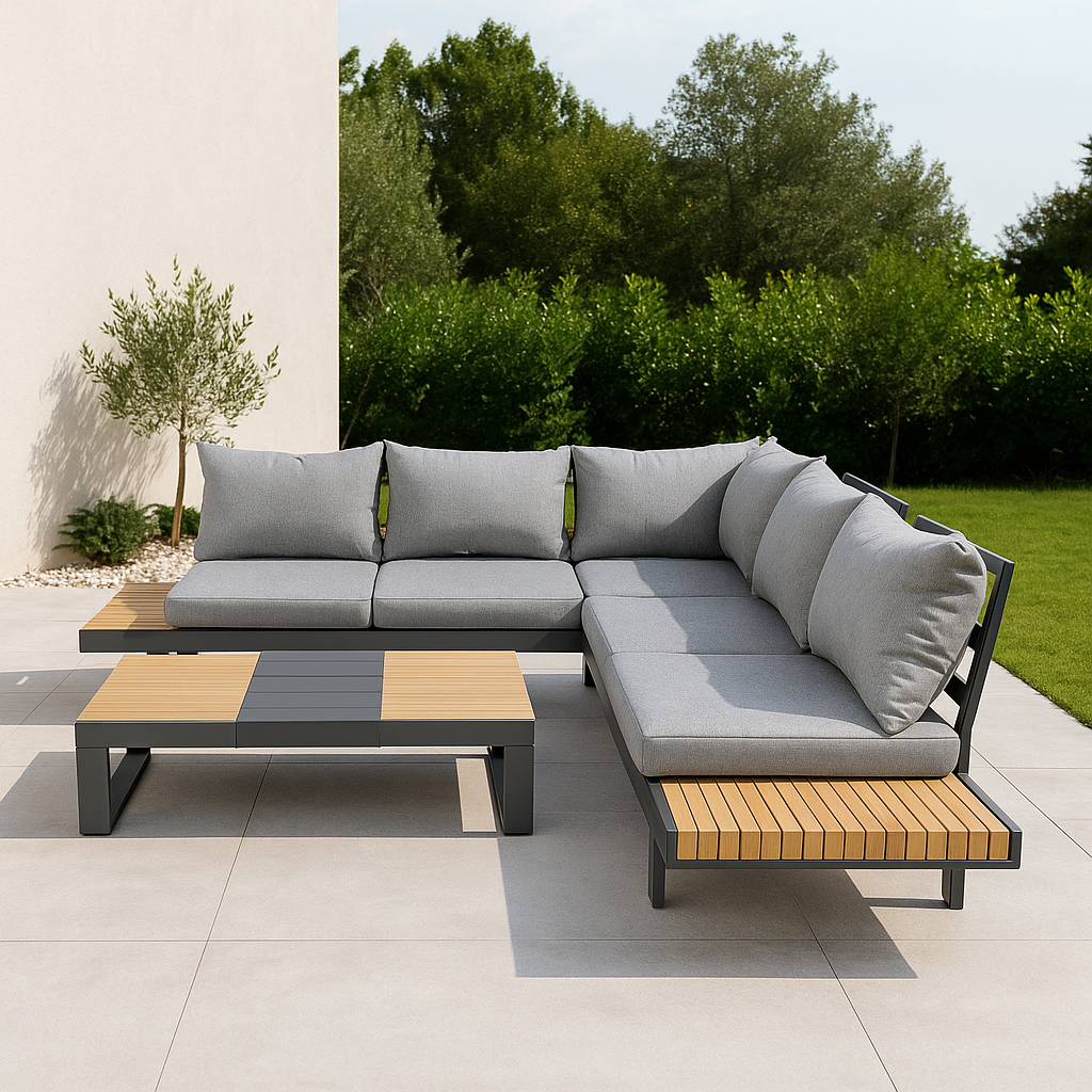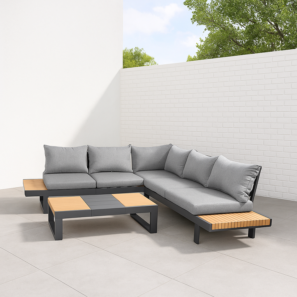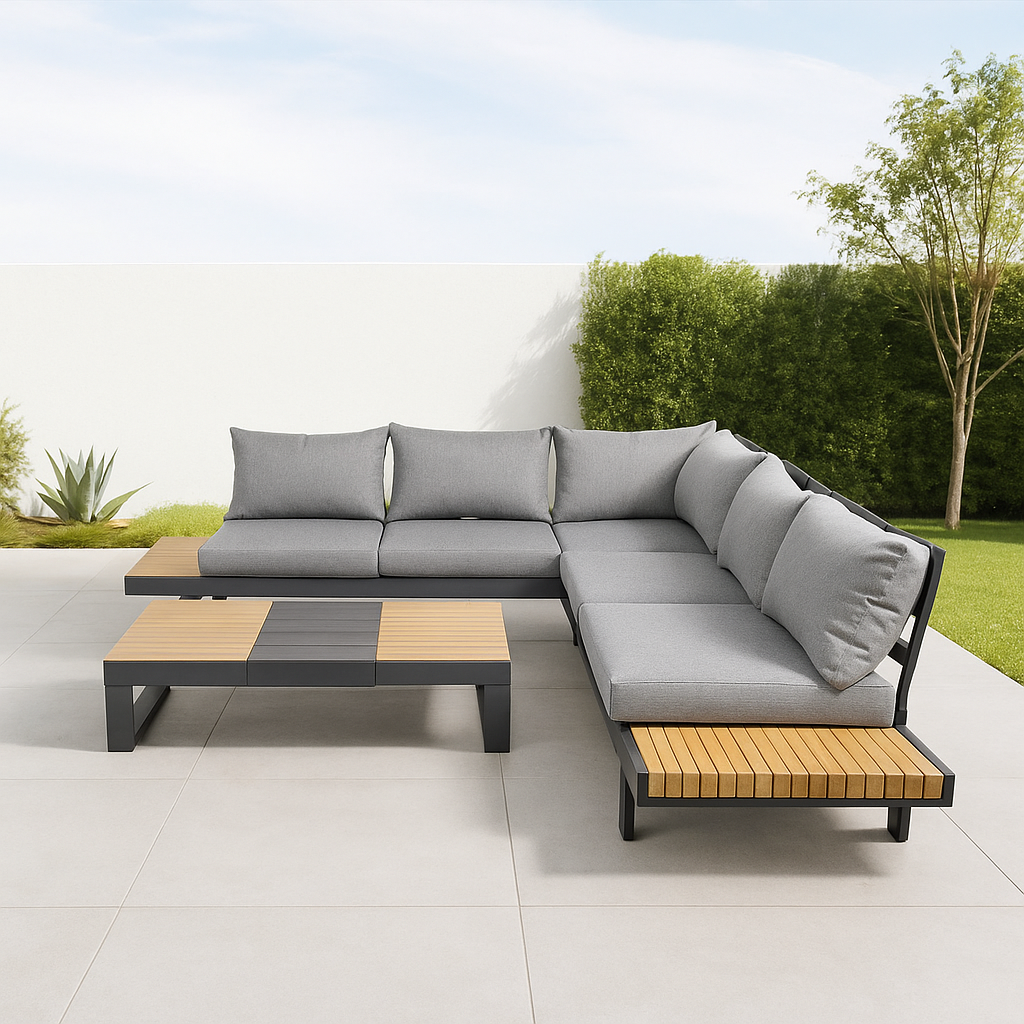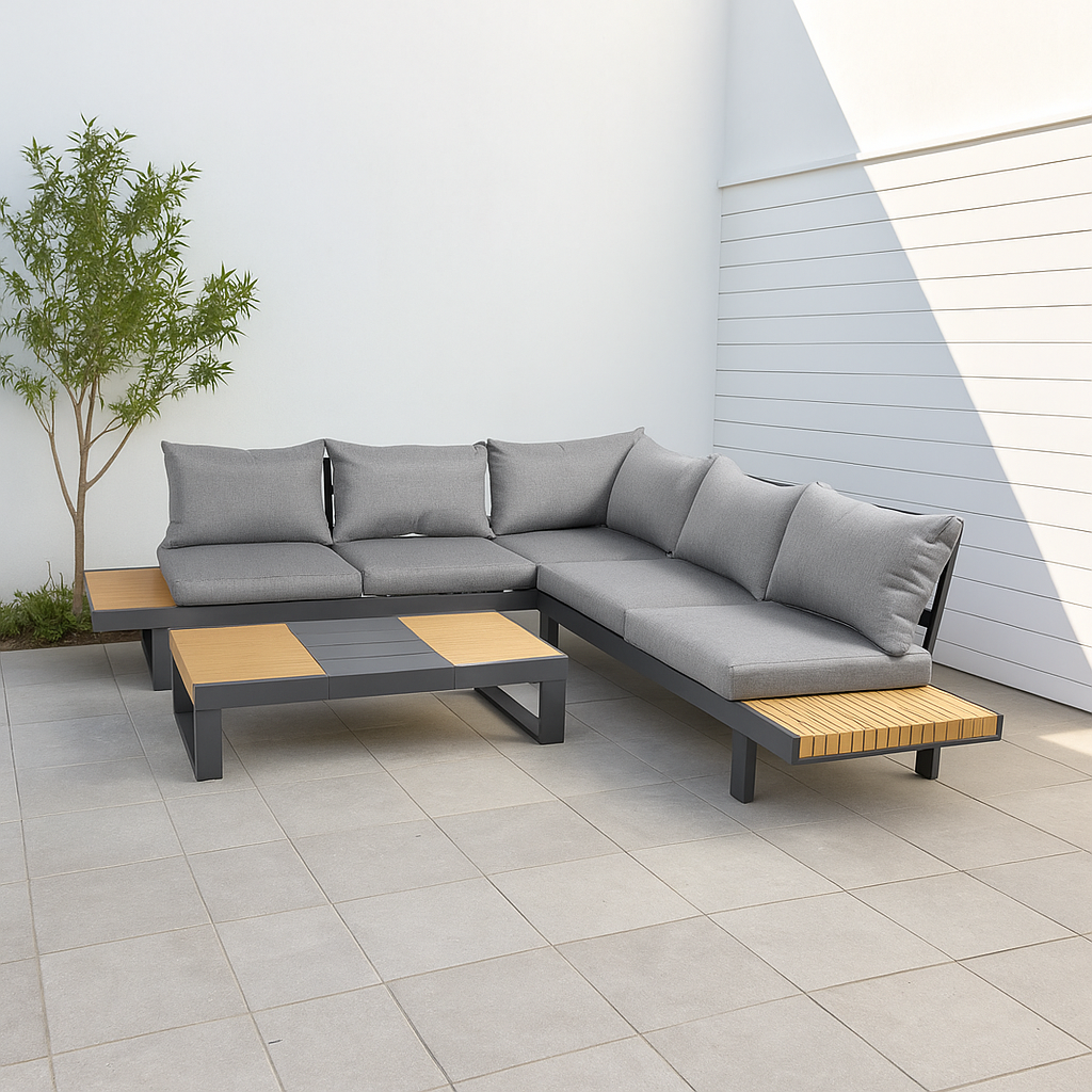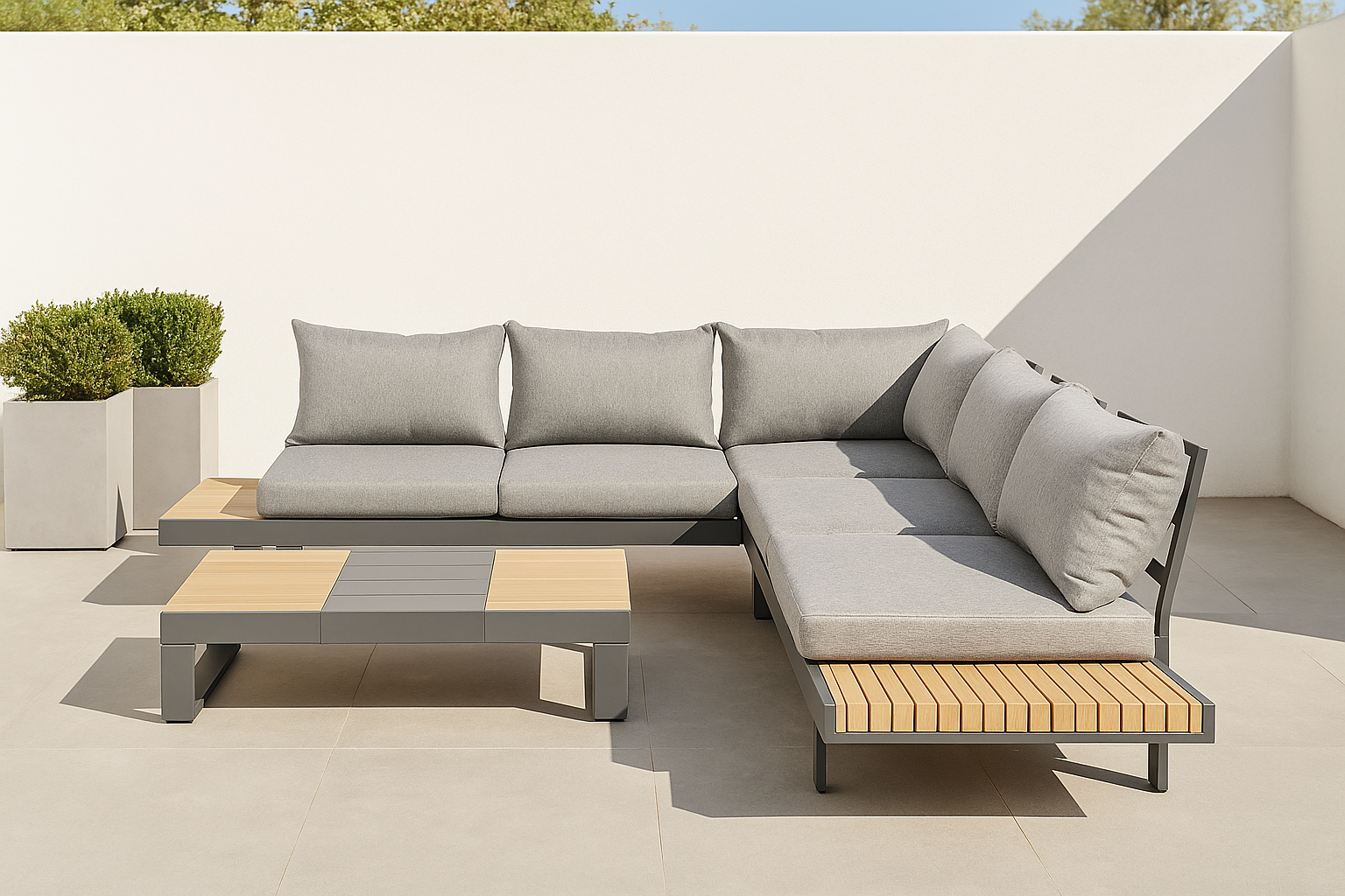 Elevate your outdoor living area with this stylish and vibrant corner sofa ensemble, designed for modern comfort and lasting durability.